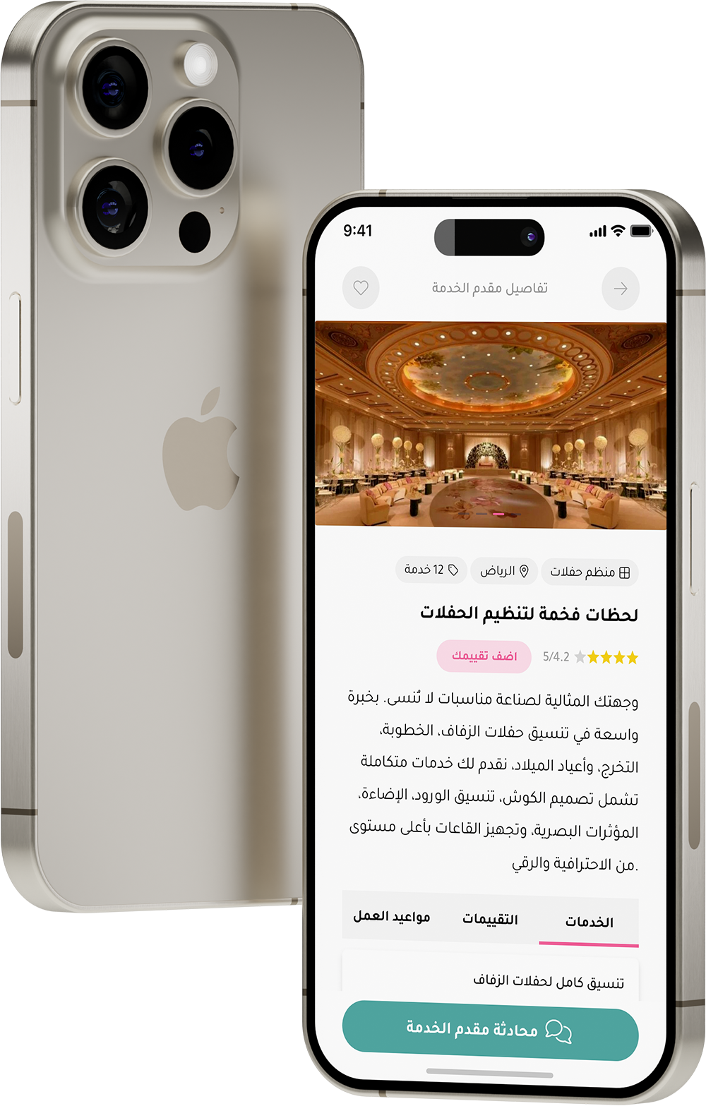 تطبيق بارتي بلانر هو منصّة سعودية متخصصة في ربط مزوّدي الخدمات في مجالات الحفلات والمناسبات مع العملاء الباحثين عن أفضل العروض والخدمات المميزة. هدفنا هو تسهيل عملية البحث والحجز، وتوفير تجربة سلسة وموثوقة لجميع الأطراف، سواء كنت تبحث عن منظم حفلات، مصور، قاعة، ديكورات، أو أي خدمة أخرى لإحياء مناسبتك. في بارتي بلانر ، نؤمن أن كل مناسبة تستحق أن تكون استثنائية، لذلك نسعى لتمكين المستخدمين من الوصول إلى أفضل مزوّدي الخدمات بأقل جهد وأسرع وقت.